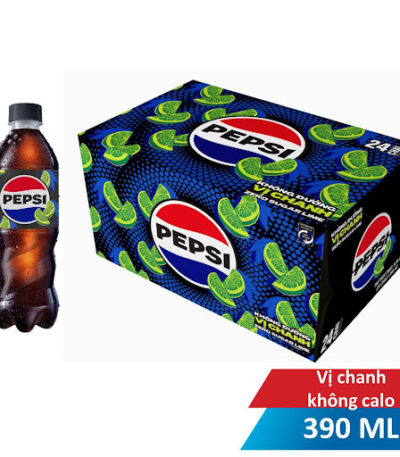 Nước ngọt có ga Pepsi không calo vị chanh chai 390ml thùng 24